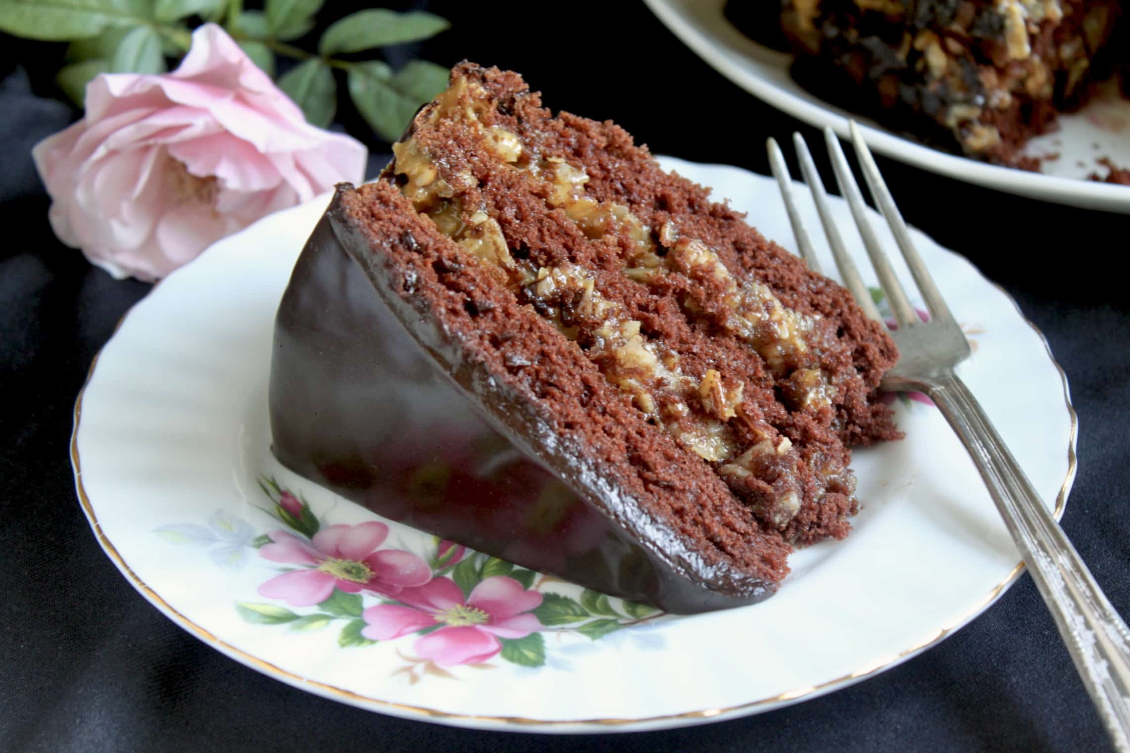 German Chocolate Cake Triple Layer Recipe With Chocolate Ganache Christina S Cucina